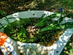 I would like to share some pics about the process with captions. Today they started to come out of the water. One of our aims as permaculturists is to create more habitats and increase biodiversity. I already have the truck tire pond in my garden but there is fish in it, probably a bit more than ideal, so frogs stopped propagating there some time ago. This new bathtub pond will hopefully serve as frog-propagation habitat and I am not going to put fish in that one.